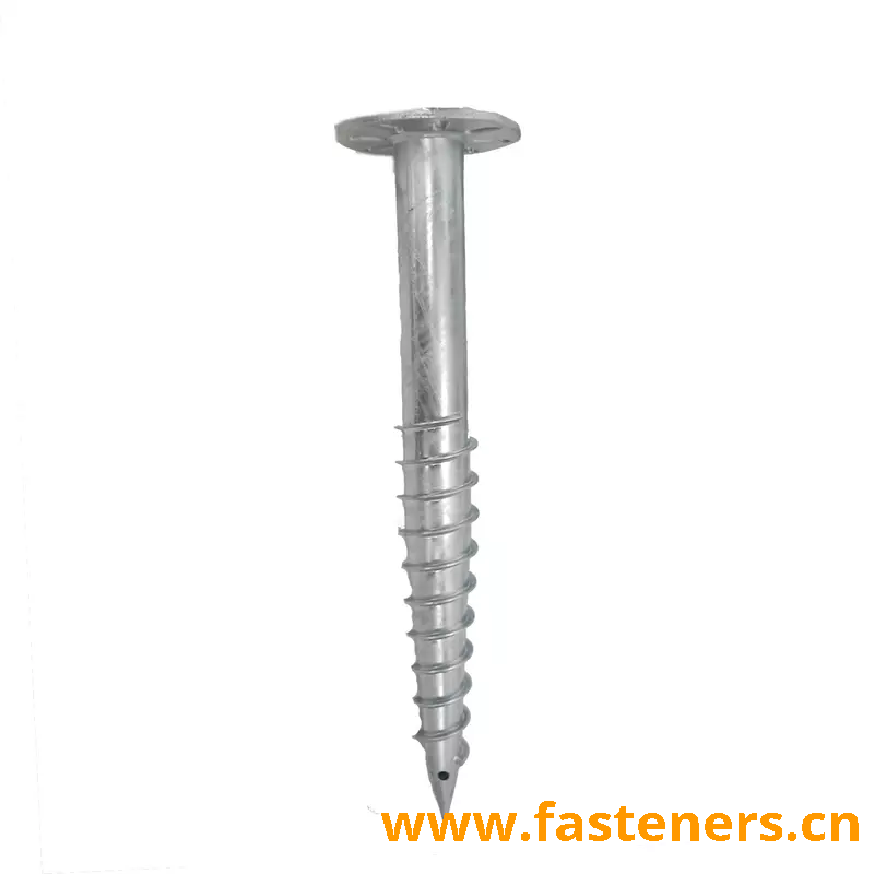 Large Spiral Blades (Helix): The large spiral blades on the ground screw provide better torque and holding capacity when the screw is rotated into the ground. The helical shape helps it to grip the soil effectively, ensuring a stable foundation.